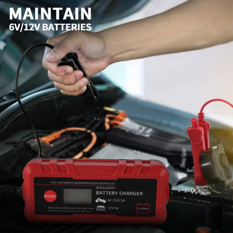 Pangisi daya baterei multi-tujuan: pangisi daya iki kompatibel karo baterei 6v lan 12v, supaya cocog kanggo macem-macem kendaraan lan peralatan, ATV, kendaraan listrik, lan alat listrik. Cocog kanggo njaga lan ngisi macem-macem jinis baterei timbal.