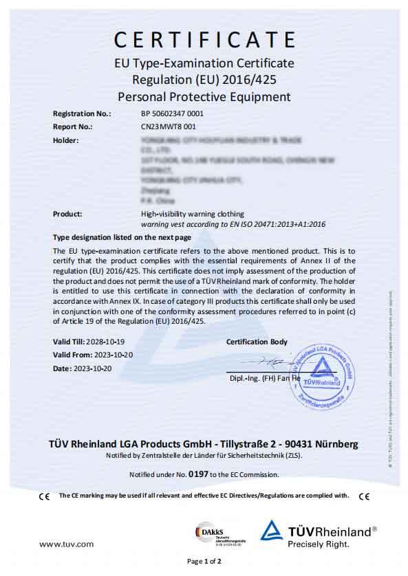 P2: Apa Rompi Peringatan Reflektif Keamanan sampeyan tundhuk karo standar safety EU lan AS?