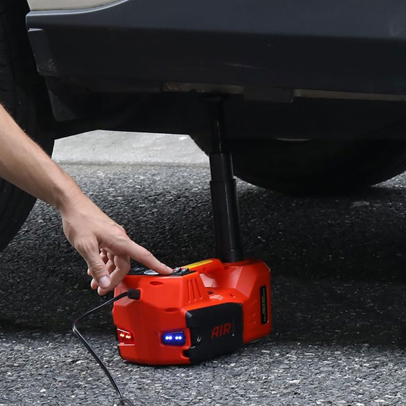 Ora kaya jacks tujuan tunggal, kit iki nggabungake ngangkat, inflasi, bisa ngilangi nut, lan ngilangi cahya kanggo alat sing kapisah. Cahya LED ngarep nyaring wilayah kerja, dene lampu sumunar mburi ngelingake lalu lintas sing bakal teka.