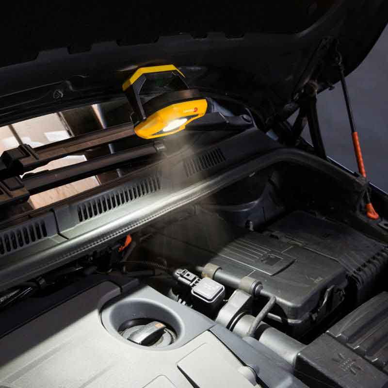 A: Nggih. Iki nduweni omah ABS anti banyu lan tahan gulung IP65, adsorpsi magnetik sing kuat, lan papan sing bisa dilipat, saengga cocog kanggo panggunaan tanpa tangan ing skenario perbaikan industri lan otomotif sing angel.